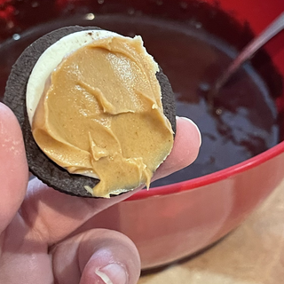 Prepare brownie mix (see my ‘The best homemade brownies’ recipe: https://www.eatingwithhouri.com/post/the-best-homemade-brownies). Open each Oreo cookie and spread 1/2 of a teaspoon of peanut butter and close the cookie back up. Place one modified Oreo cookie into each cupcake muffin cup. Spoon 3 tablespoons of brownie batter over each Oreo and let it run down the sides of the cookies. Bake cookies and brownies for 22 minutes, until brownies are cooked through. Let cool completely then serve.